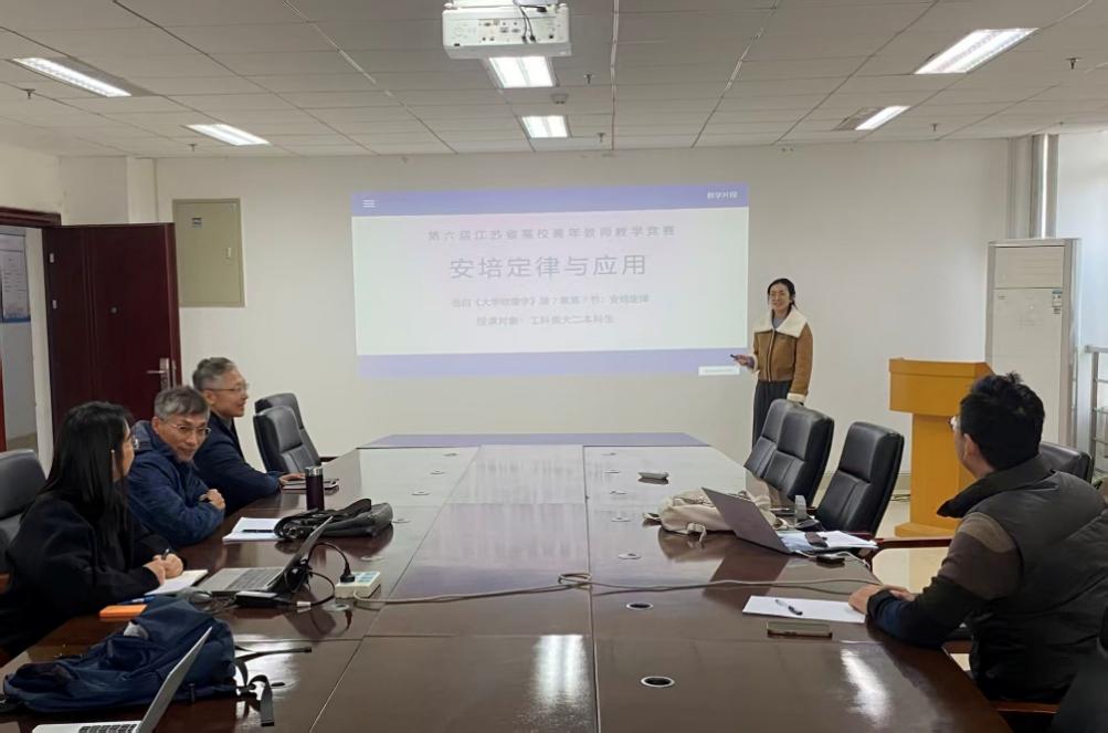 为锤炼青年教师教学基本功,精准对接江苏省高校青年教师教学竞赛要求,近日伟德国际victor1946组织开展基层教学组织活动之教学竞赛活动,我院应用物理系青年教师徐萌遵循青教赛比赛流程完成模拟演练。本次活动由姚红兵副院长主持,多位骨干教师参加了此次专项活动。