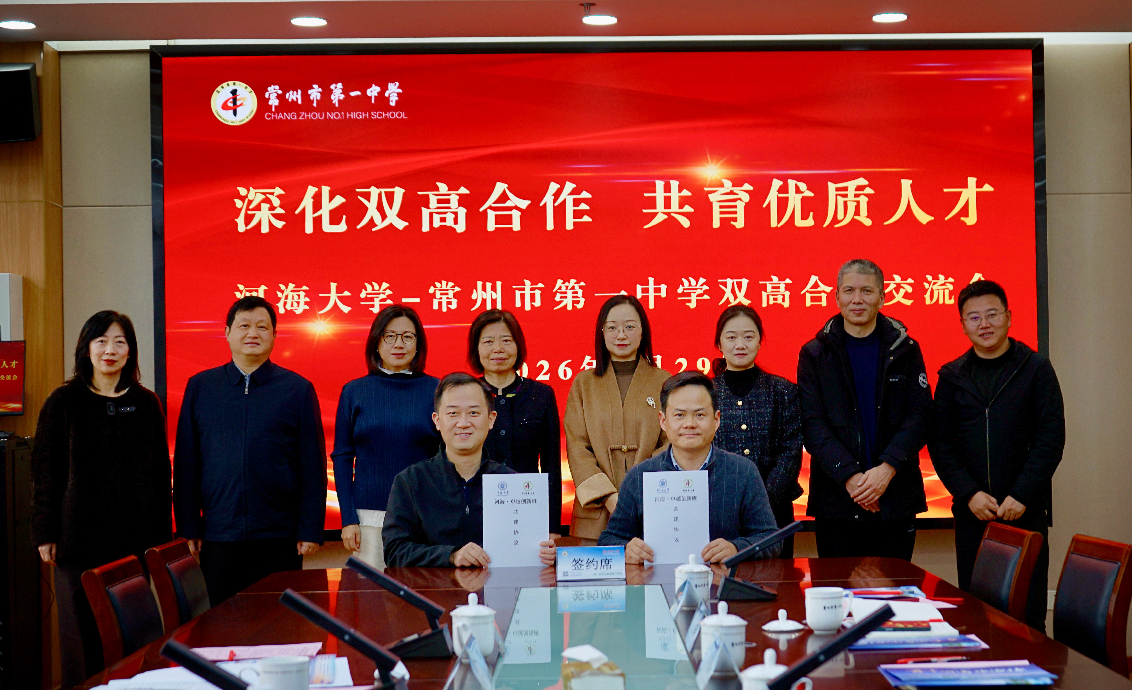 为推动我校与重点中学协同育人提质增效,搭建人才培养衔接桥梁,1月29日,伟德victor1946党委副书记、纪委书记孟新、学生工作处处长王方、伟德国际victor1946党委书记任海莹、院长雷冬、副书记、副院长武晓楠等一行赴常州市第一中学开展“双高共建”交流座谈,并举行“河海·卓越创新班”签约仪式。常州市第一中学党委书记、校长姚奕、副校长张玲娜、吴伟国、蒋平、赵一鹏等全体校领导、课程发展处、学生发展处及相关年级负责人出席了活动。