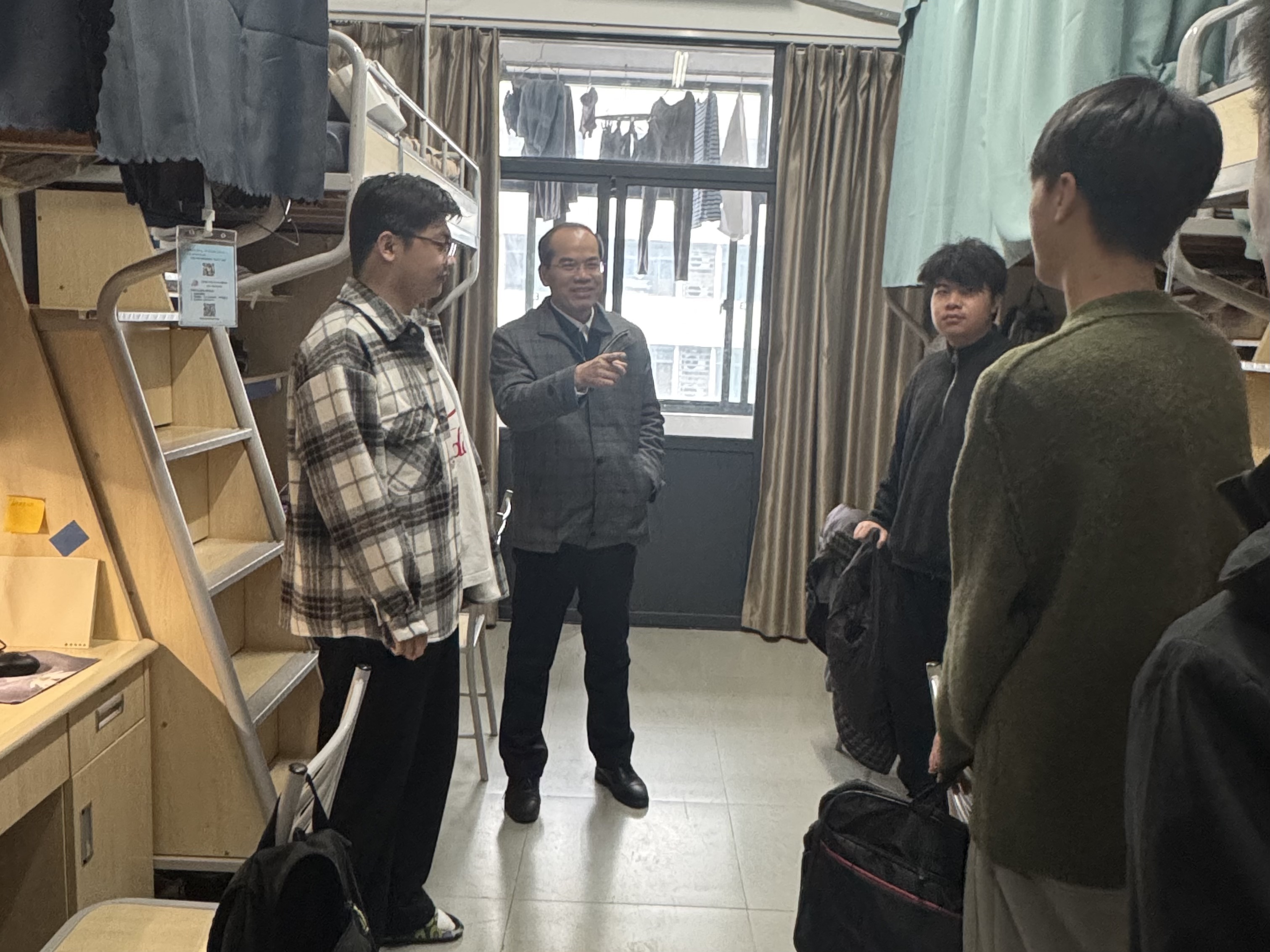 走访过程中,郑金海校长关切地询问同学们新学期的适应情况,了解大家的饮食起居、学习困惑以及未来的发展规划,他叮嘱同学们养成良好的生活习惯,保持宿舍整洁有序,在舒适和谐的集体氛围中共同进步、共同成长。郑校长还勉励同学们要树立远大理想,培养创新思维,努力在专业领域追求卓越。他的话语既有温度又有深度,让同学们倍感温暖、备受鼓舞。